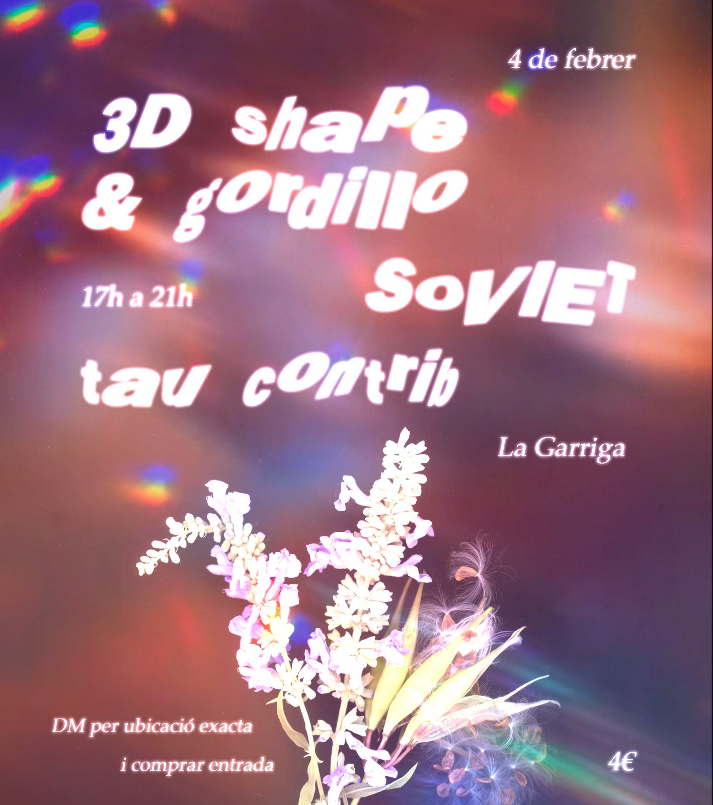El dia 4 de febrer, faré un concert a La Garriga amb gordillo. Tocarem cançons unreleased de 3D Shape utilitzant teclat, guitarra elèctrica, SP404 i el meu portàtil + alguns temes del nou EP de gordillo “let the next room not be as empty as this one”.