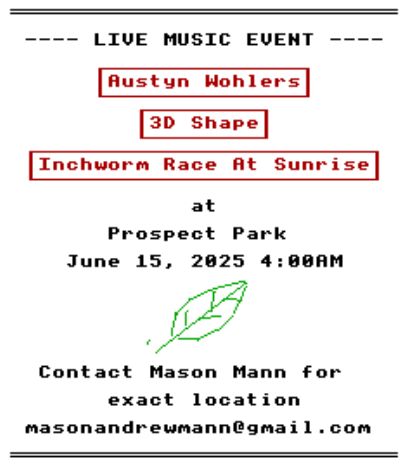 w/ Inchworm Race At Sunrise & Austyn Wohlers.